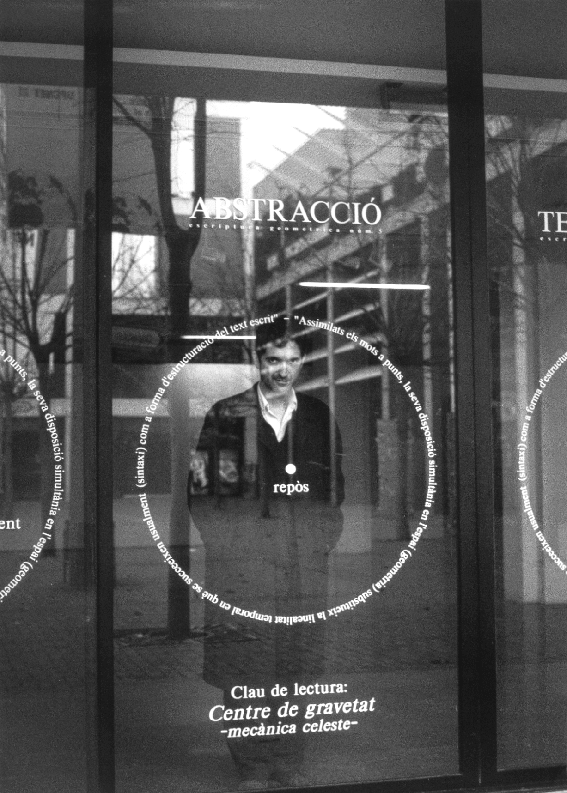 1a exposició – Foto: Anne-Hélène Suárez (1998) 1a exposició – Estrella: Coberta (dissenyada per Jordi Pascual) del Fullet de mà de l’exposició Panorama vitri d’escriptura geomètrica (Barcelona:  UPC-FME, 1998).