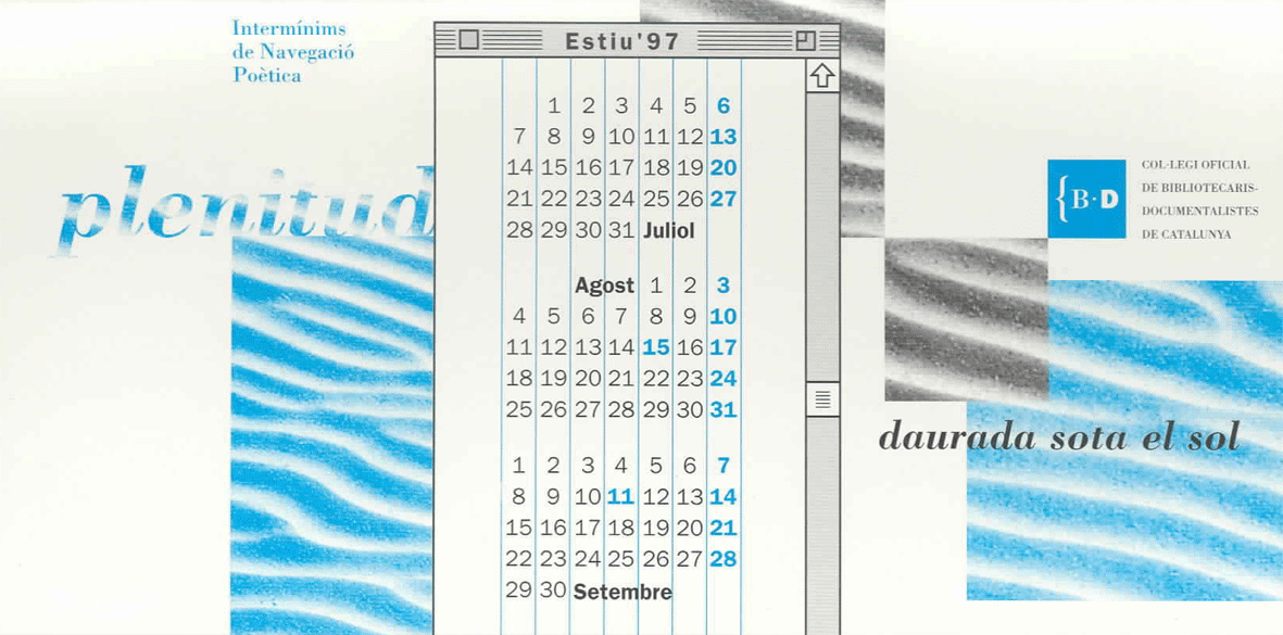 [Les quatre estacions: calendari 1997 del Col.legi Oficial de Bibliotecaris - Documentalistes de Catalunya] / disseny: Manuel Gonell. Barcelona: COBDC, 1997.