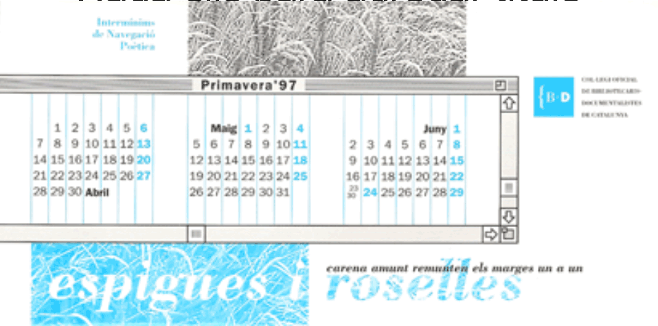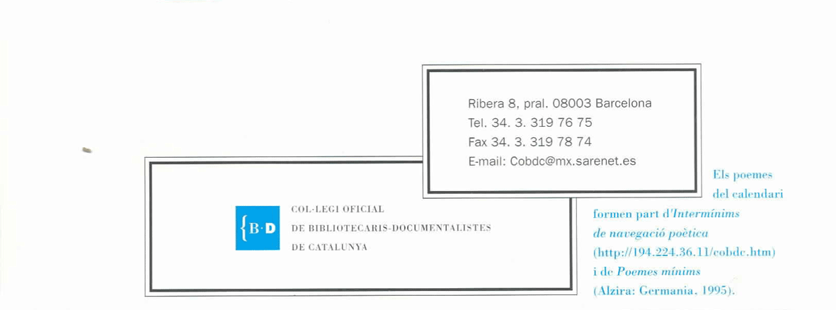 [Les quatre estacions: calendari 1997 del Col.legi Oficial de Bibliotecaris - Documentalistes de Catalunya] / disseny: Manuel Gonell. Barcelona: COBDC, 1997. [Les quatre estacions: calendari 1997 del Col.legi Oficial de Bibliotecaris - Documentalistes de Catalunya] / disseny: Manuel Gonell. Barcelona: COBDC, 1997.