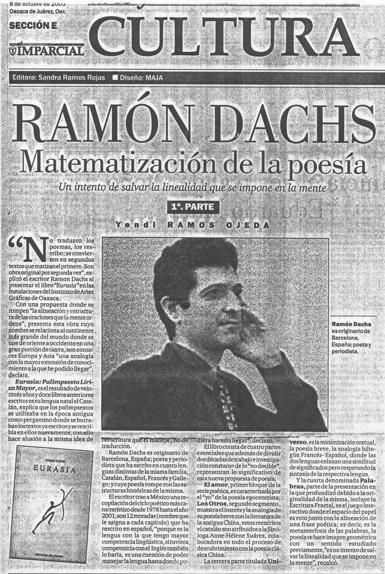 Ramos Ojeda, Yendi: “Ramon Dachs: matematización de la poesía”  Imparcial (Oaxaca, 8/X/2003)