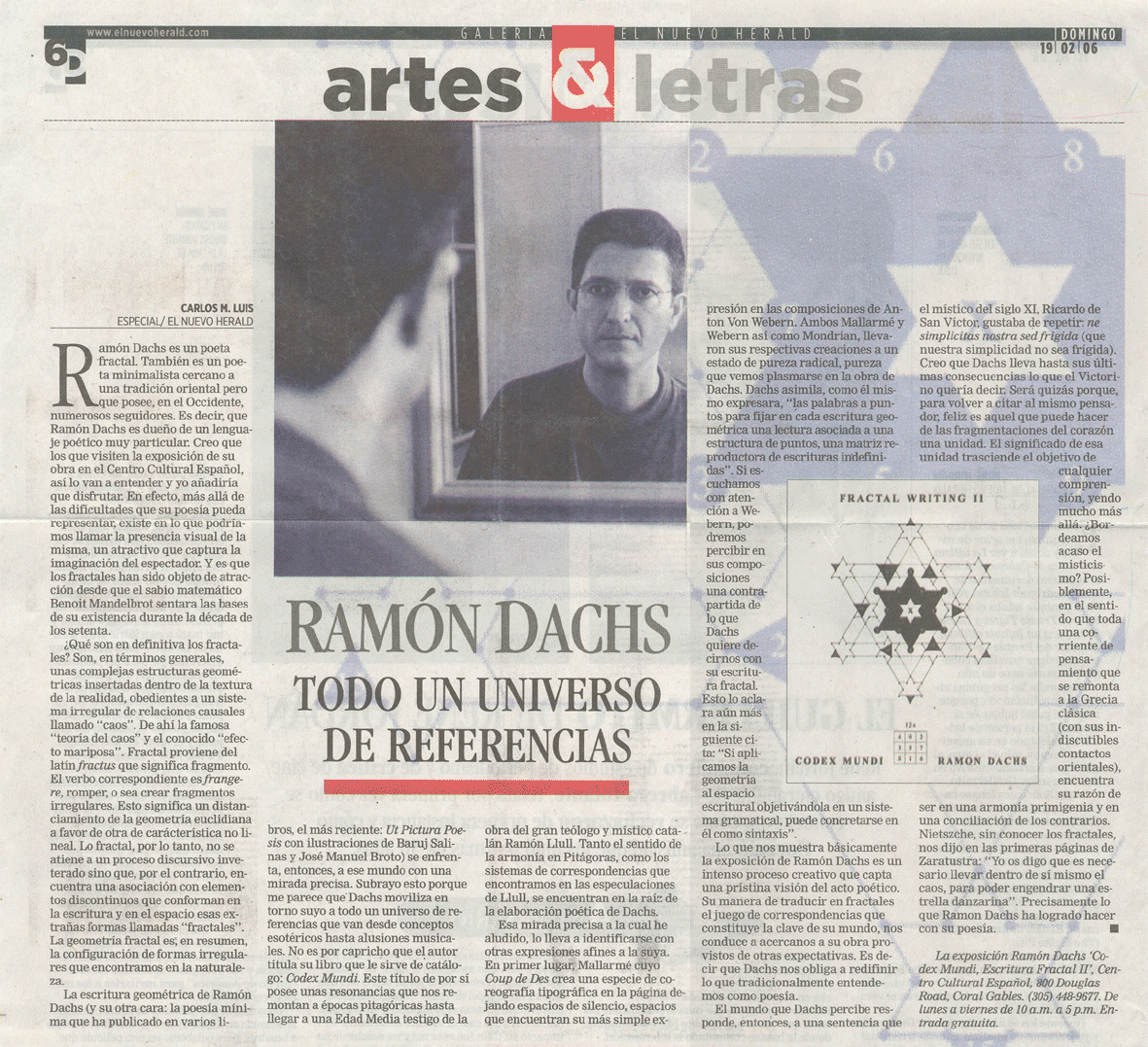 Luis, Carlos M.: “Ramon Dachs: todo un universo de referencias” El Nuevo Herald. Artes & Letras (Miami, 19/II/2006).