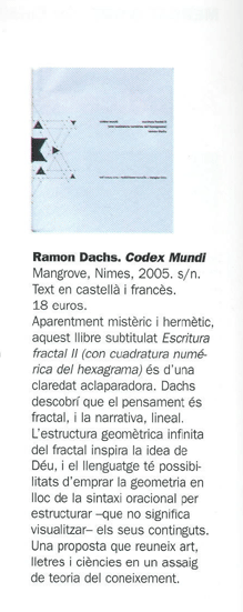 Mas, Ricard: “Llibres: Codex mundi / Ramon Dachs” El Temps d’Art (València, I-II/2006).